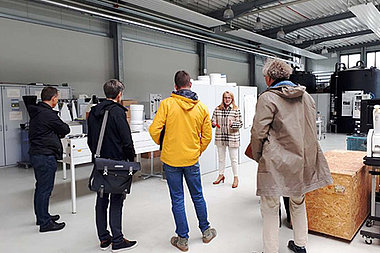 Im Anschluss besichtigten die Teilnehmer*innen den Innovationsstandort :metabolon in Lindlar, der im Rahmen der REGIONALE 2025 um das Projekt Bergische Ressourcenschmiede – Hub für zirkuläre Wertschöpfung aktuell erweitert und als Kompetenzknotenpunkt für Nachhaltigkeit im Bergischen RheinLand aufgebaut wird. Vor Ort konnten die Akteur*innen des bio innovation park Rheinland e.V. im Rahmen einer Führung über das Gelände des Forschungsinstituts der TH Köln wertvolle Eindrücke gewinnen. Monika Lichtinghagen-Wirths, Geschäftsführerin des Bergischen Abfallwirtschaftsverbands, und Prof. Dr. Christian Wolf, TH Köln, informierten über die Forschungsschwerpunkte auf :metabolon und die weiteren Planungen der Bergischen Ressourcenschmiede. Ziel ist es, sich mit Hilfe des REGIONALE-Projektes zu einem impulsgebenden Standort für schonende und zukunftsgerichtete Ressourcennutzung zu entwickeln. Dabei soll insbesondere durch den Bau eines Forschungs- und Transferzentrums der Wissensaufbau zum Thema zirkuläre Wertschöpfung intensiviert und der Austausch von Akteur*innen optimal unterstützt werden.