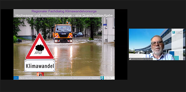 In einem weiteren Beitrag erklärte Herr Prof. Dr. Lothar Kirschbauer von der Hochschule Koblenz, wie Hochwasserschutz als ressortübergreifende Querschnittsaufgabe zu verstehen ist und ging dabei unter anderem auf praxisnahe Beispiele zum privaten Objektschutz ein.